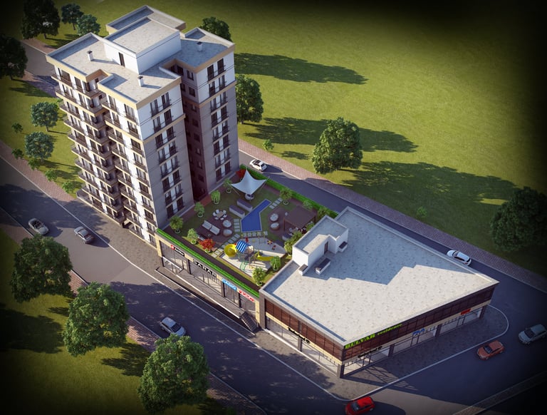 Modern yaşamın çok yönlü ihtiyaçlarına yanıt verecek şekilde tasarlanan bu rezidans projesi, hem mimari estetiği hem de fonksiyonel alan kullanımıyla öne çıkmaktadır. 7.000 m² kapalı alana sahip yapı; sosyal alanlar, ofis bölümleri ve ticari alanları bir araya getirerek kullanıcılarına konforlu, ferah ve aydınlık bir yaşam merkezi sunmayı hedeflemektedir.