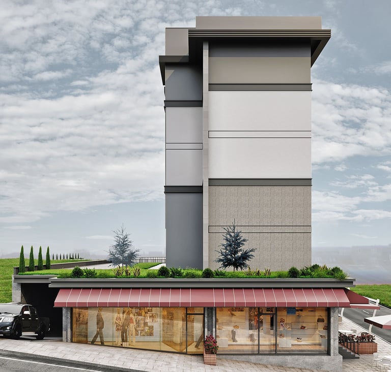 Zemin katta yer alan 4 adet dükkan alanı (1.700 m²), bölgeye canlılık kazandıran ticari birimler sunarken; üst katlardaki ofis alanları (4.000 m²), modern çalışma ortamlarıyla işletmelerin ihtiyaçlarını karşılamaktadır. Geniş cam cepheleri ve doğal ışığı verimli kullanan yapısı, ferah ve üretken bir iş atmosferi oluşturur.